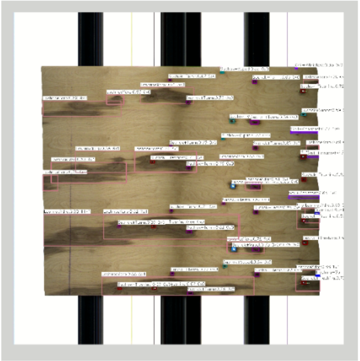 Система распознает и классифицирует дефекты сухого шпона в режиме реального времени. Определяет сорт по заданному рецепту и формирует сигнал управления. Использование нейросетевых алгоритмов детектирования позволяет устранить причину возникновения дефекта на ранней стадии и повысить качество выпускаемой продукции, а также сократить издержки на брак.